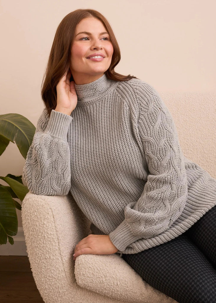 Long Sleeve Cable Mock Sweater [Gray-2256O]