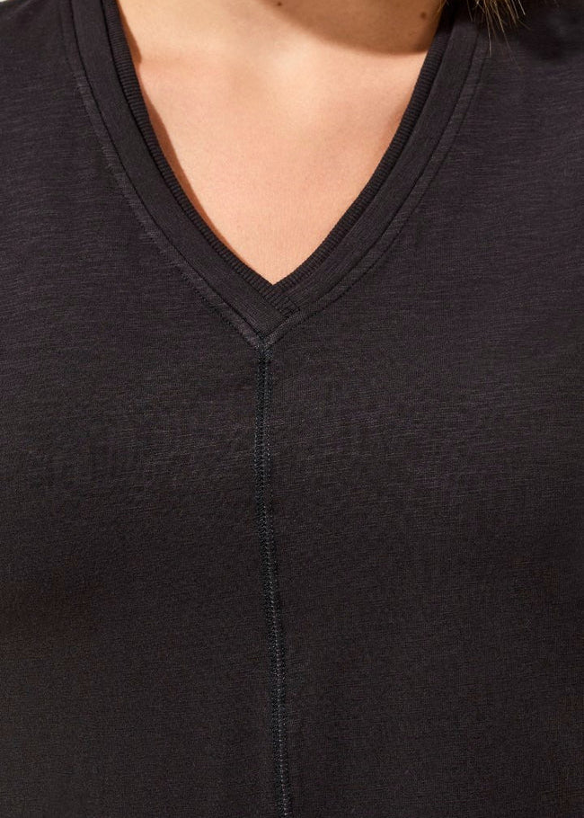 S/S V-Neck Top W Rib Combo [Black-3052O]