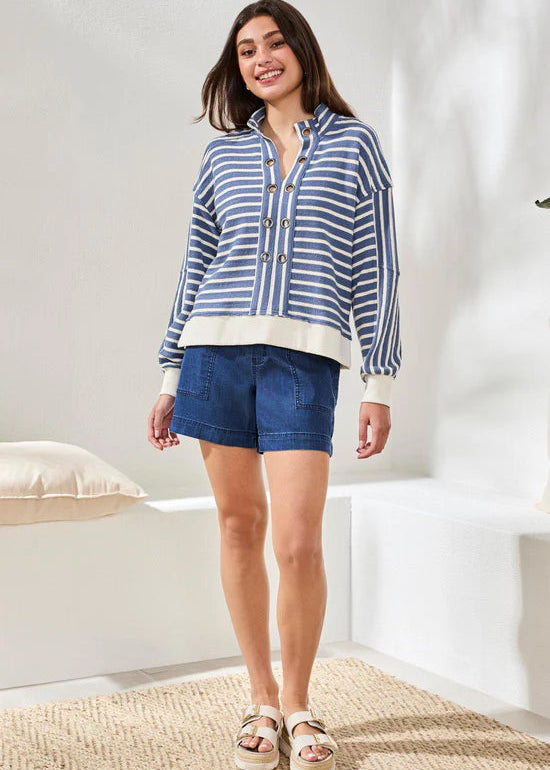 Grommet Front Stripe Top [Sea Haven-6224O]